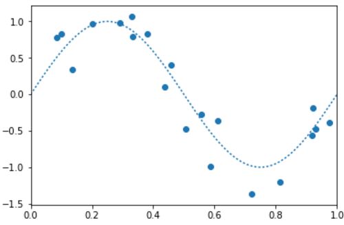 scikit-learnで最小二乗法 y=sin(x)に誤差をランダムで付加した100個のデータを準備し、 学習用:テスト用=8:2に分けて実行。 import numpy as np import matplotlib.pyplot as plt #sklearn.cross_validationは非推奨、次のヴァージョンで廃止予定 #sklea…